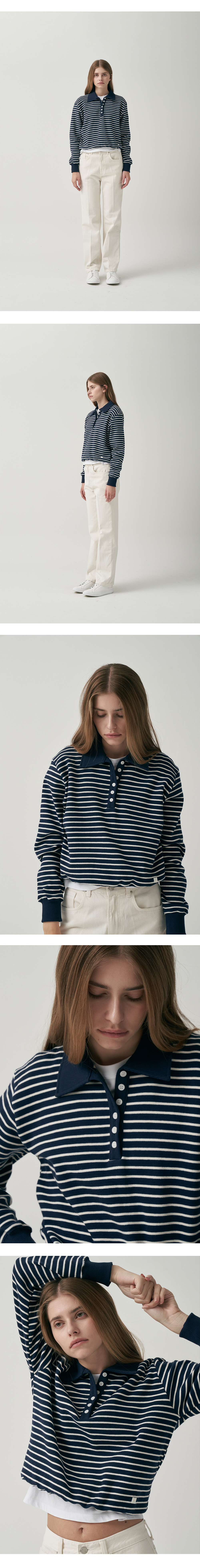[8차][3/28예약발송]버튼 카라 스트라이프 스웻셔츠 - Navy