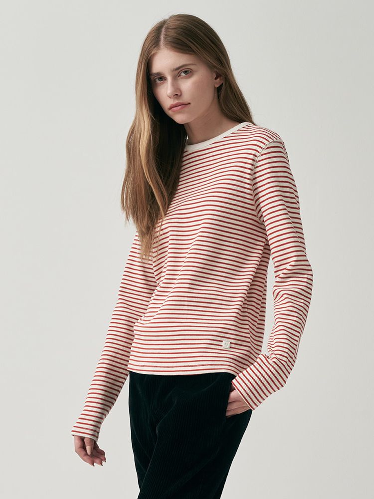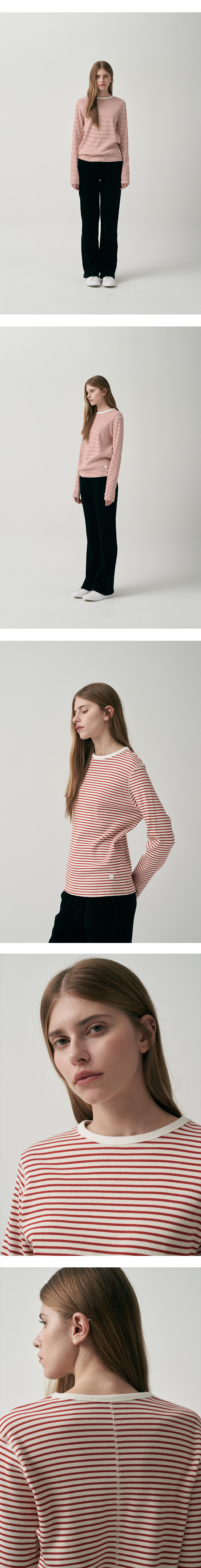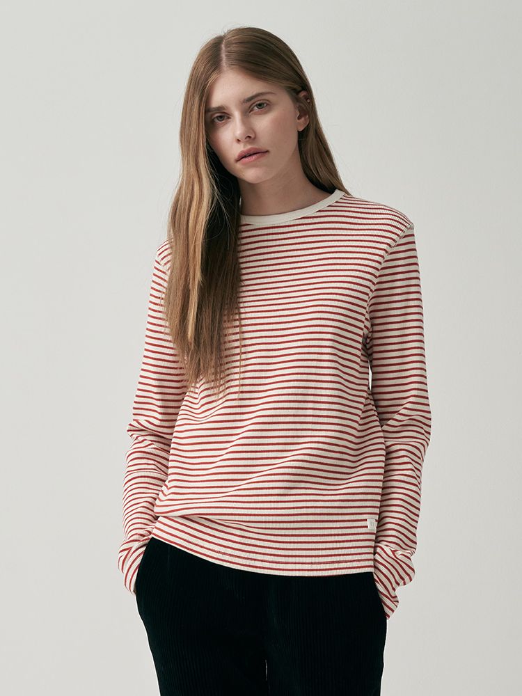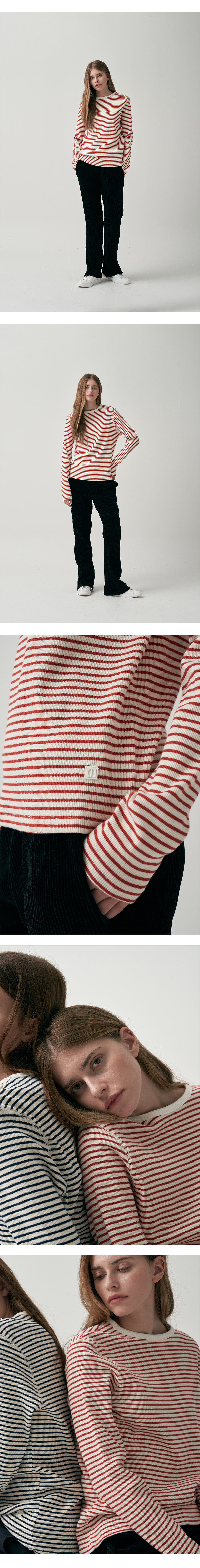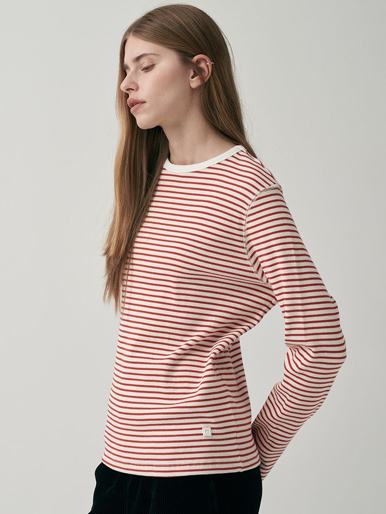 - 코튼 소재의 골지 조직 스트라이프 티셔츠