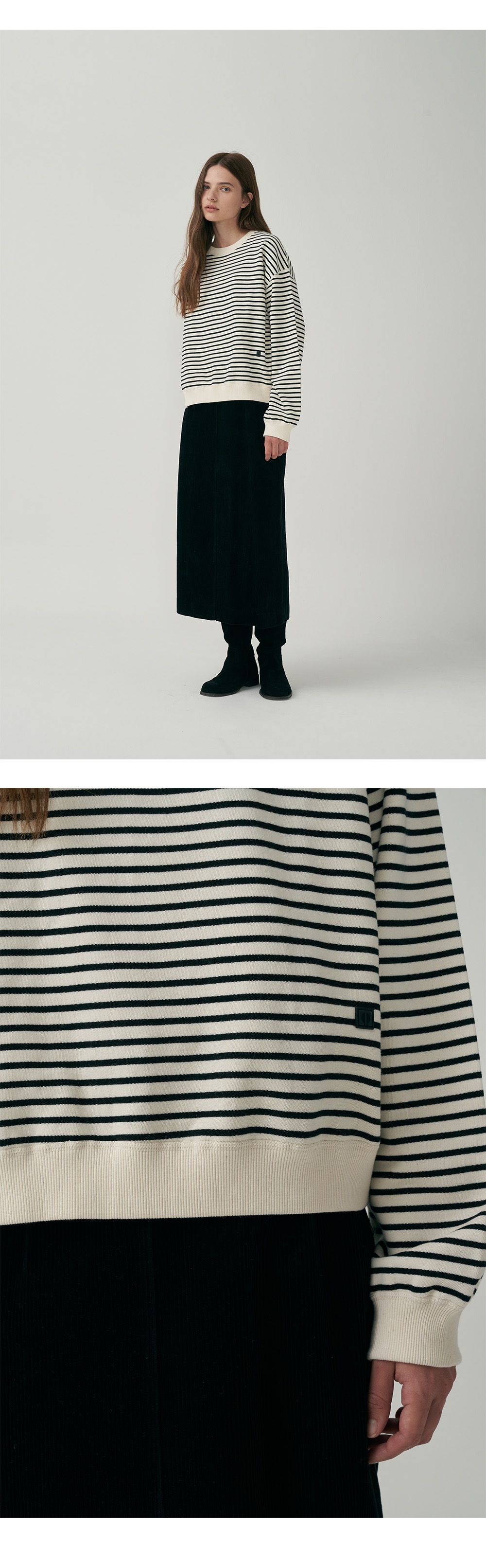 스티치 스웻셔츠 - Strip Ivory