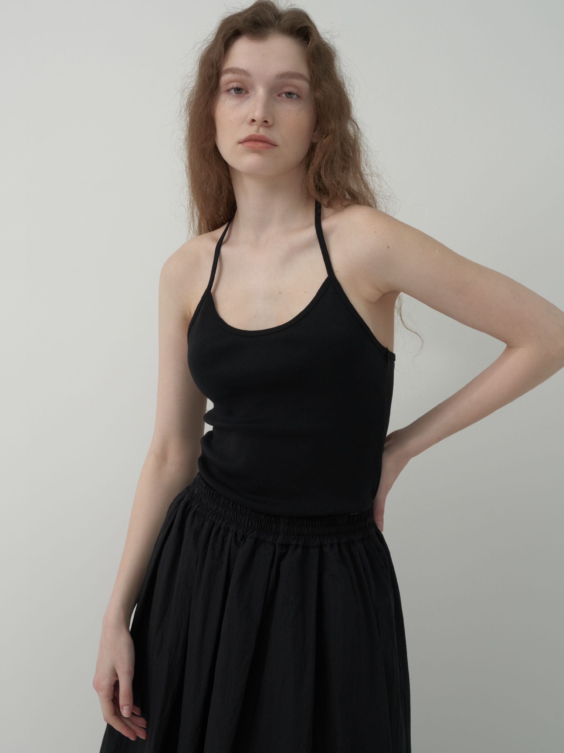 홀터 무지 슬리브리스 - Black