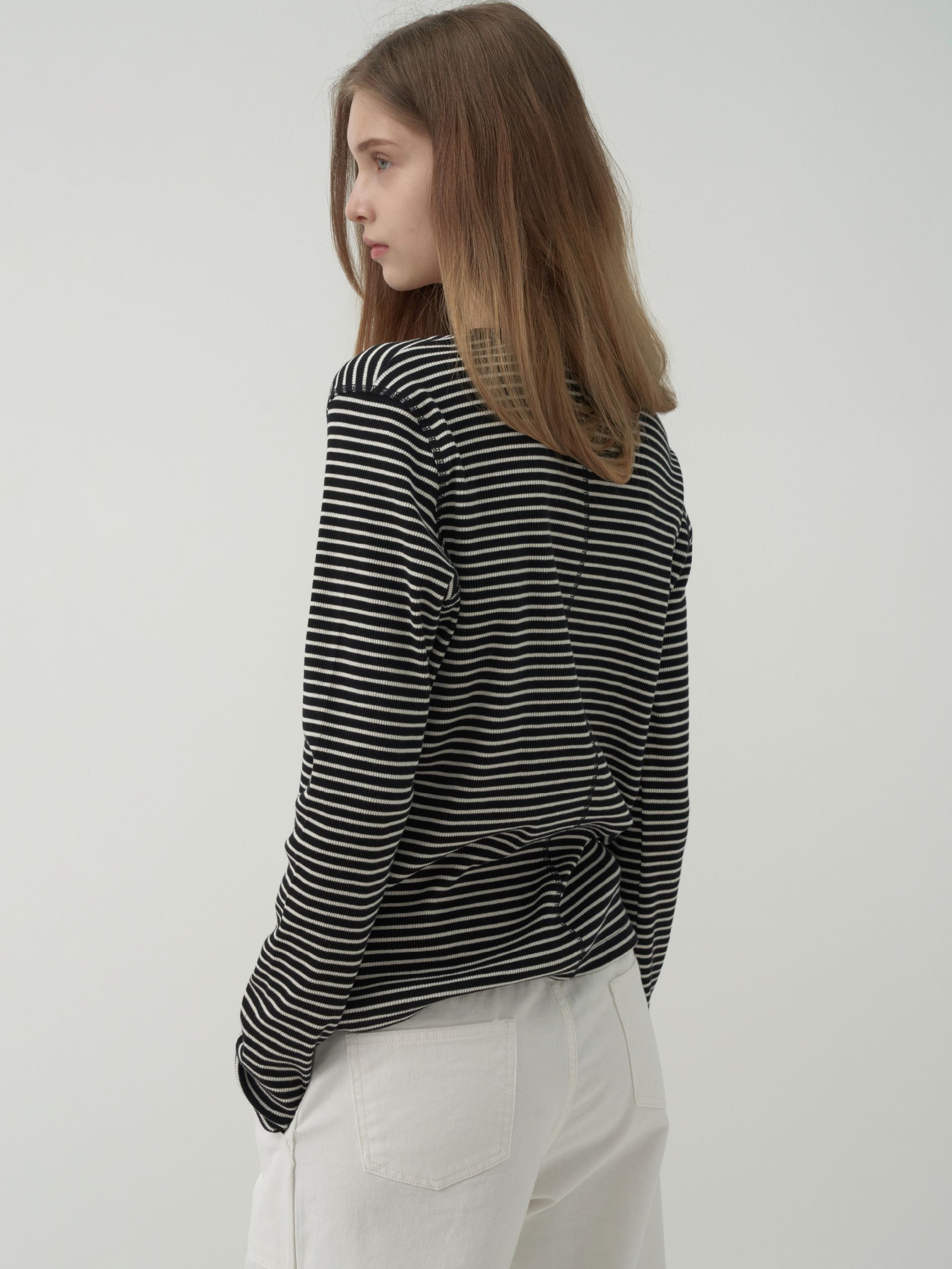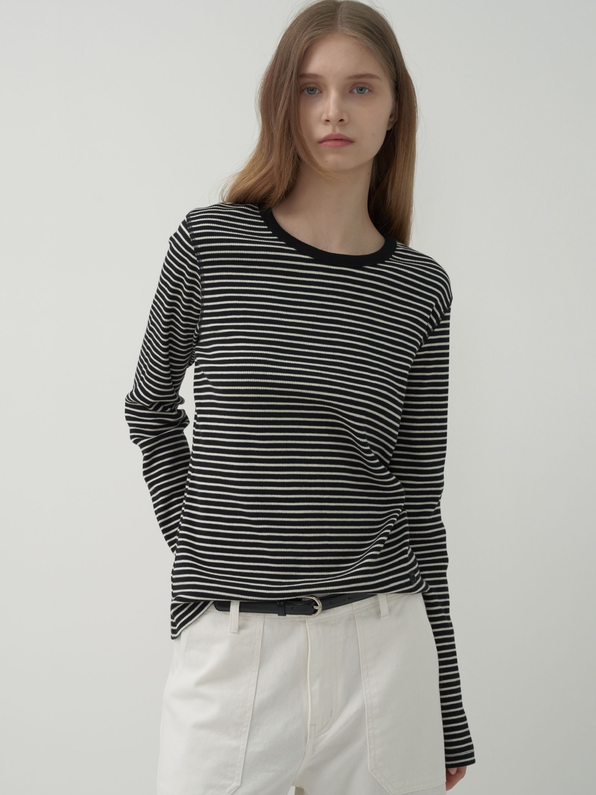 뉴 리브드 스트라이프 컬러티셔츠 - Black
