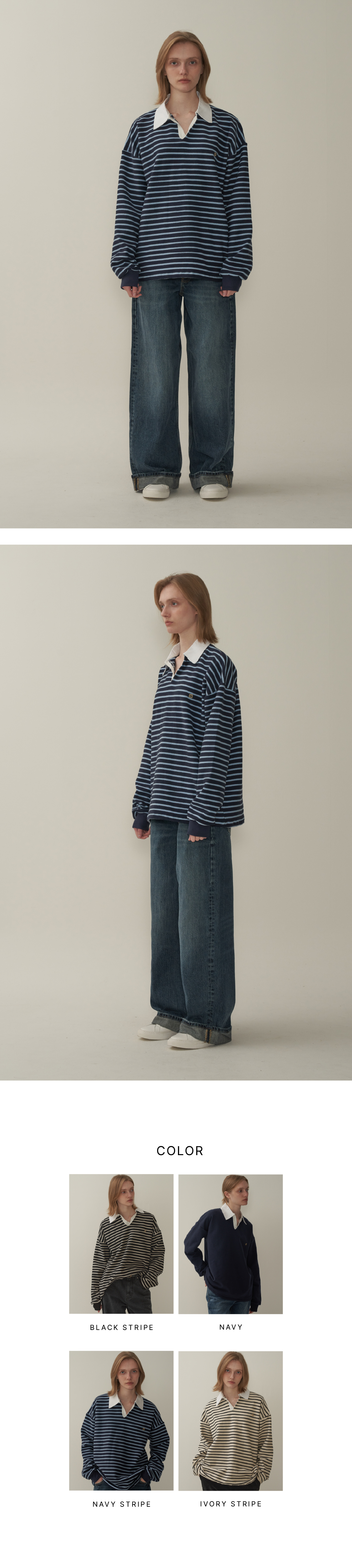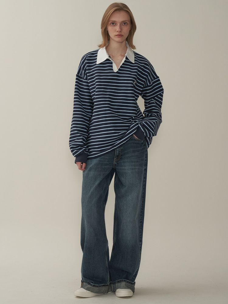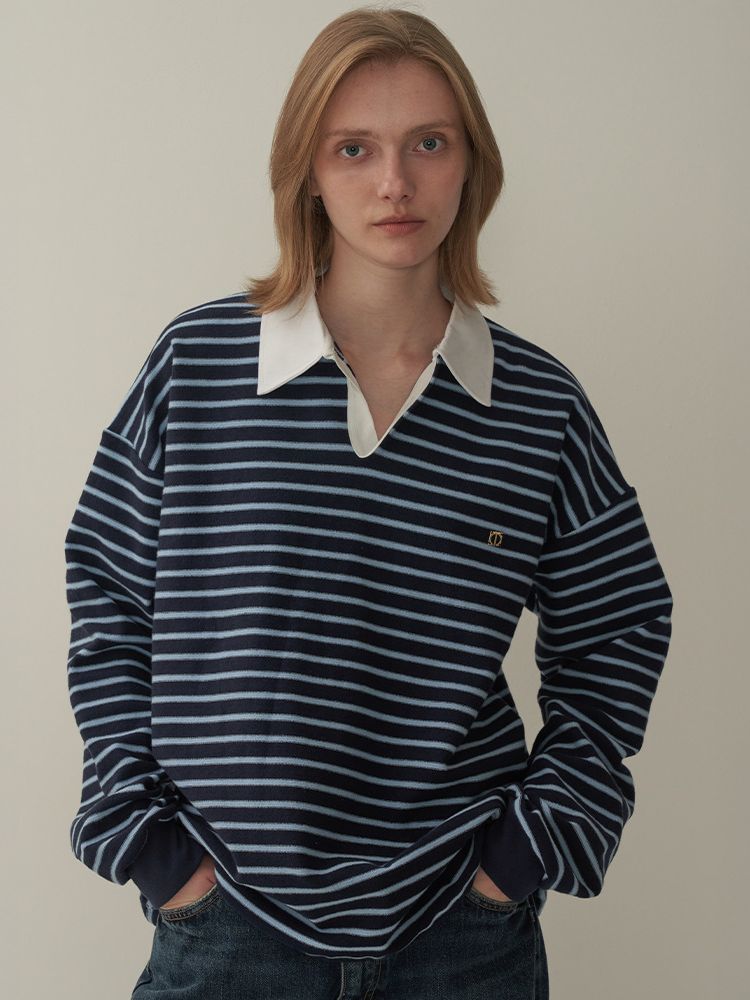 브이넥 카라 스트라이프 티셔츠 - Navy