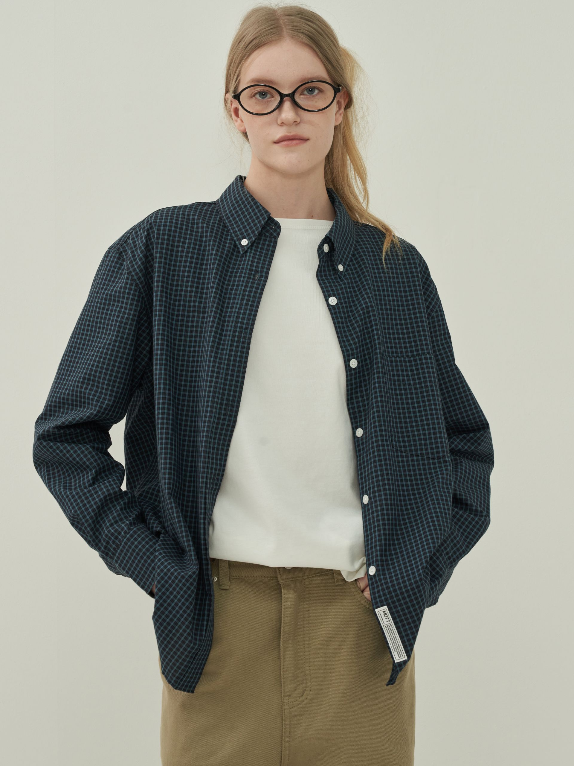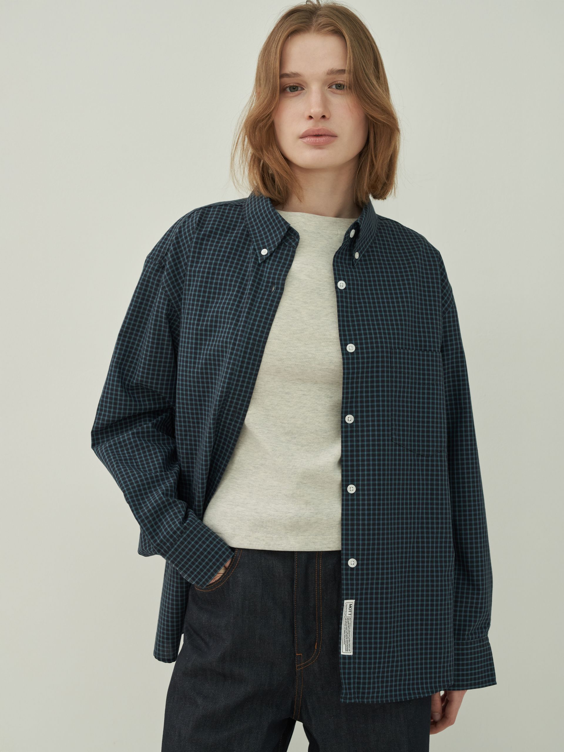 버튼 다운 체크 셔츠 - Vintage Green