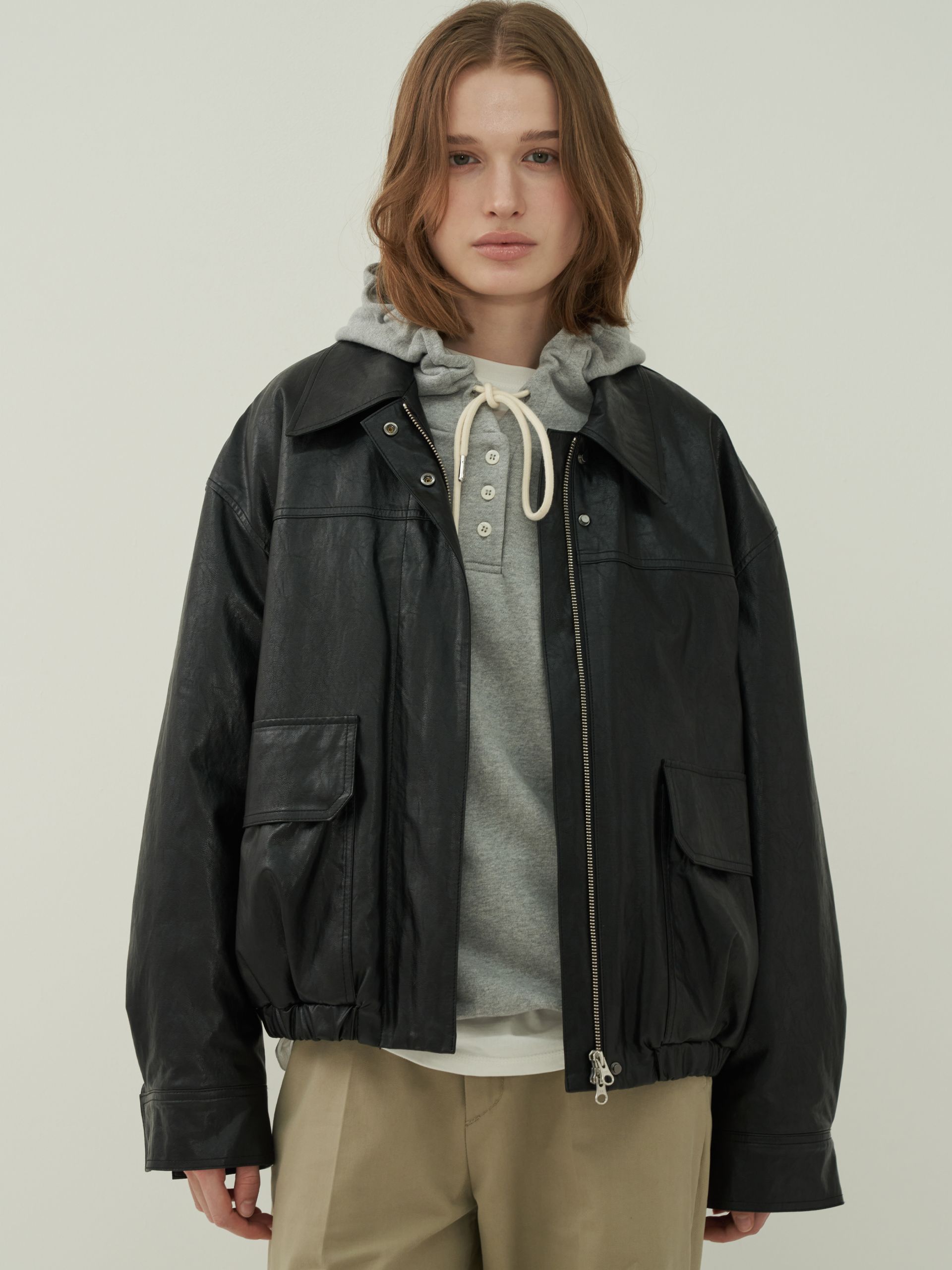 클래식 포켓 레더 퀄팅점퍼 - Black