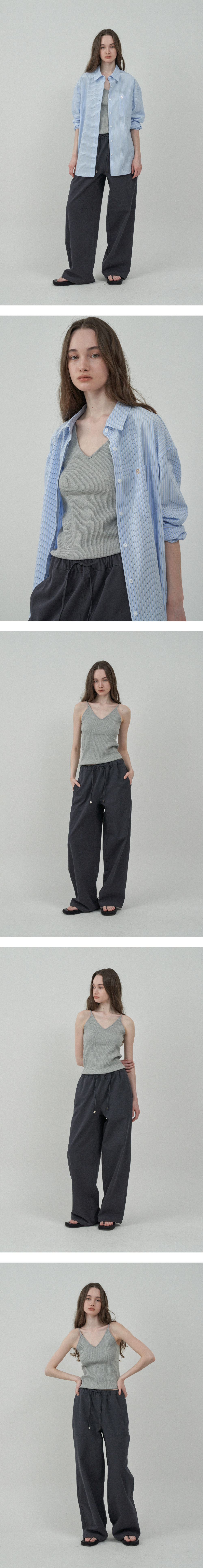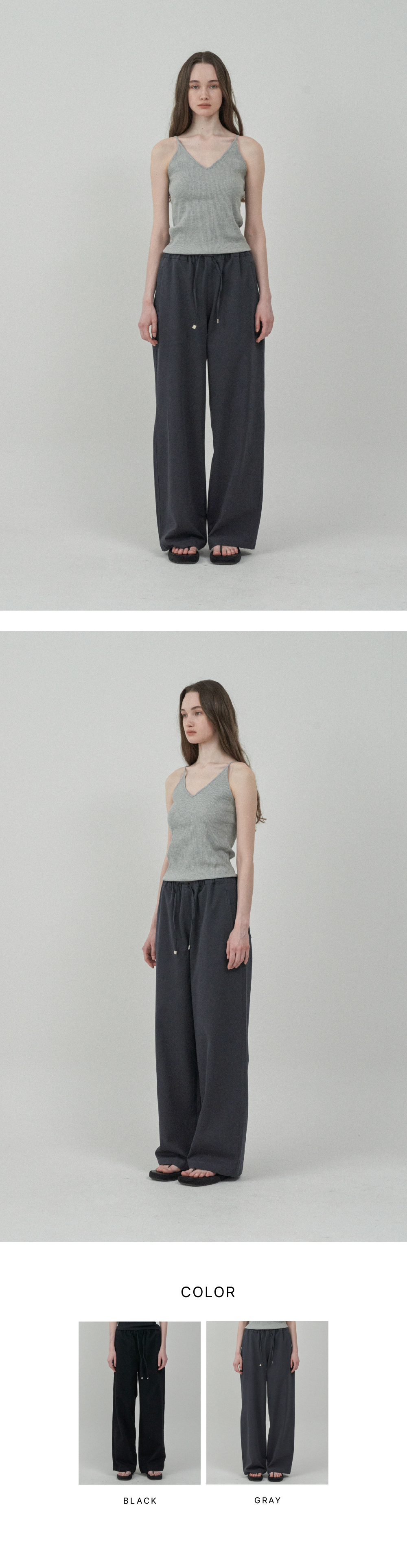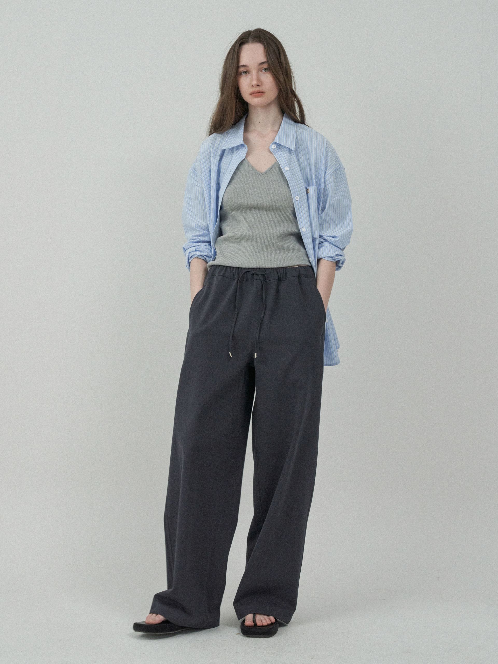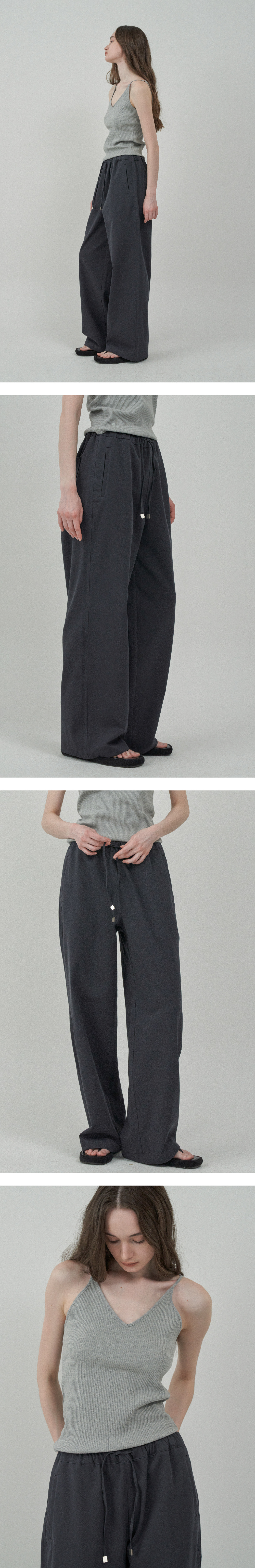 노멀 밴드 코튼 팬츠 - Gray